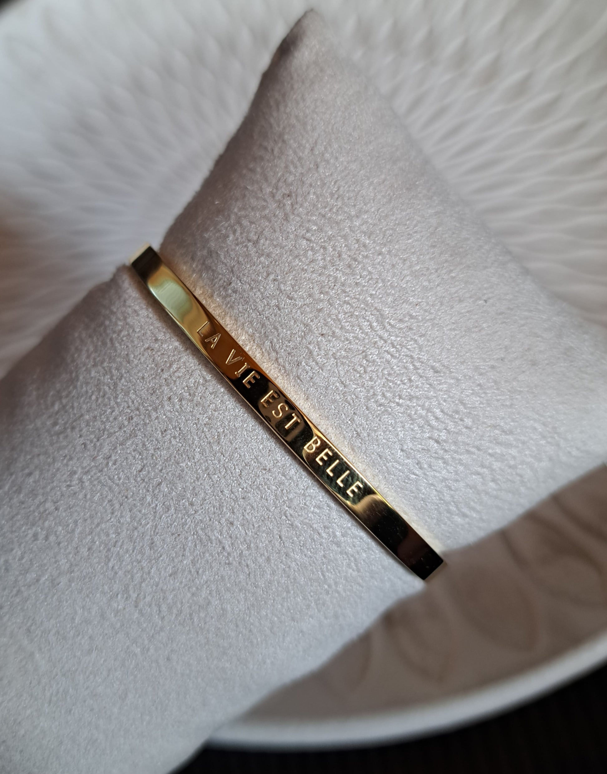 Der Schmuck besteht aus Edelstahl, Edelstahl mit nickelfreier Goldlegierung oder Messing 18k vergoldet.