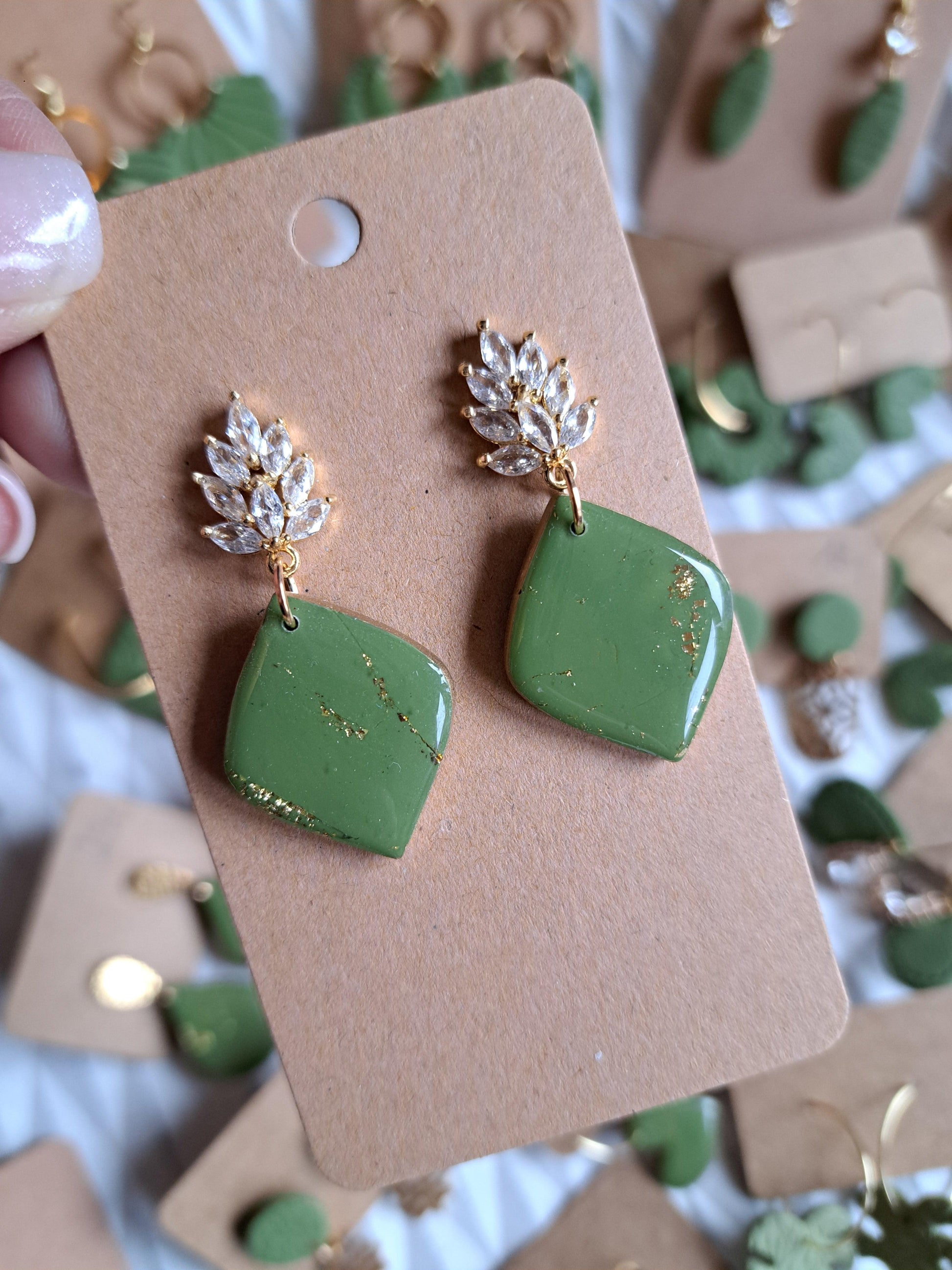 Polymerton ist eine ofenhärtende Modelliermasse die sich vor allem durch ihr leichtes Gewicht auszeichnet. Daher sind die Ohrringe sehr angenehm zu tragen und beschweren deine Ohren nicht. Nach dem Ausrollen und in Form bringen werden die Ohrringe gebacken und durchlaufen danach viele verschieden Arbeitsschritte. Einige Arbeitsschritte kannst du dir auch Hier ansehen. Manche Modelle werden nach dem Backen mit UV Harz versiegelt. Die Rückseiten der Ohrringe sind in der Regel nicht bearbeitet.
