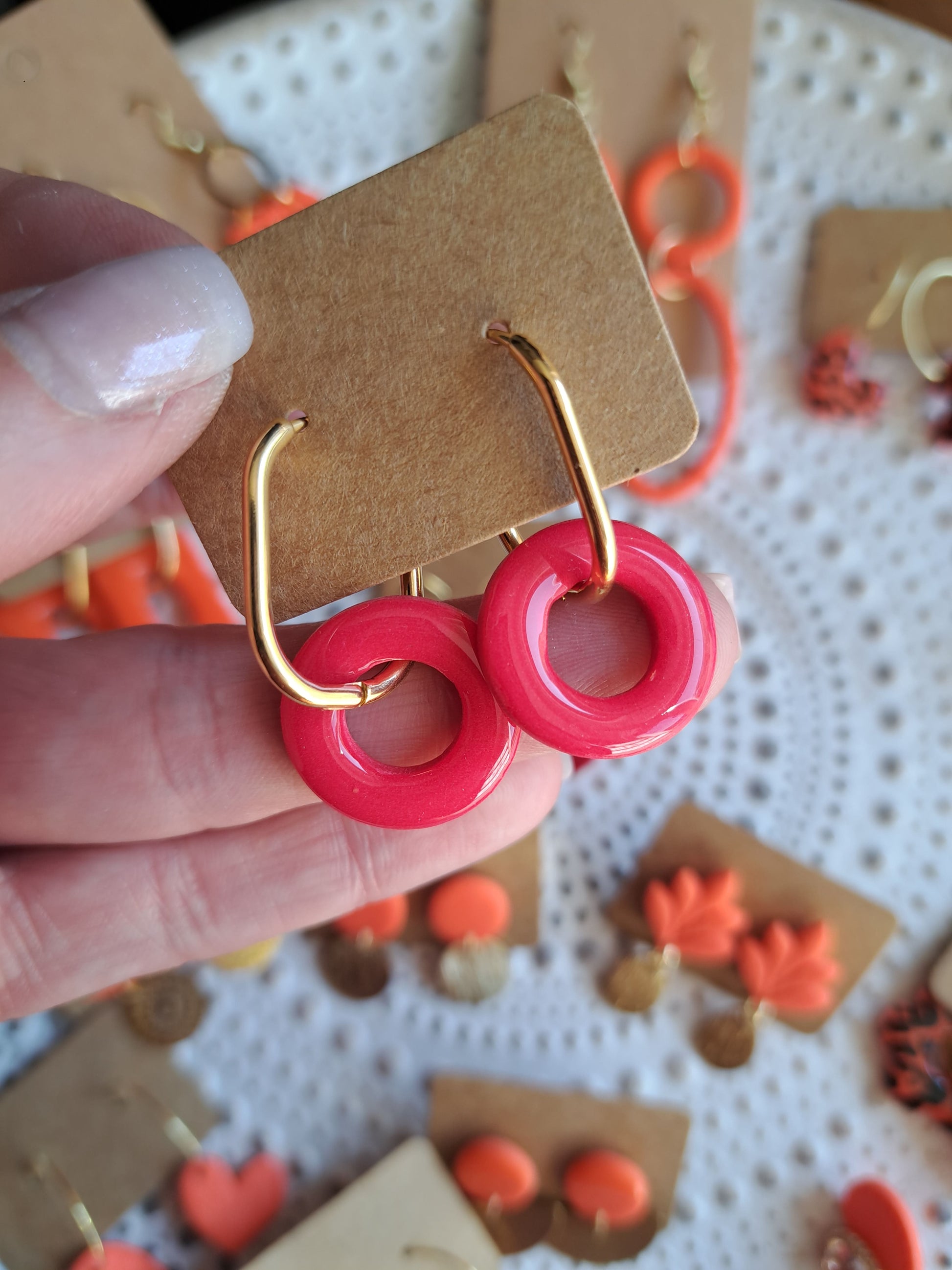 Polymerton ist eine ofenhärtende Modelliermasse die sich vor allem durch ihr leichtes Gewicht auszeichnet. Daher sind die Ohrringe sehr angenehm zu tragen und beschweren deine Ohren nicht. Nach dem Ausrollen und in Form bringen werden die Ohrringe gebacken und durchlaufen danach viele verschieden Arbeitsschritte. Einige Arbeitsschritte kannst du dir auch Hier ansehen. Manche Modelle werden nach dem Backen mit UV Harz versiegelt. Die Rückseiten der Ohrringe sind in der Regel nicht bearbeitet.