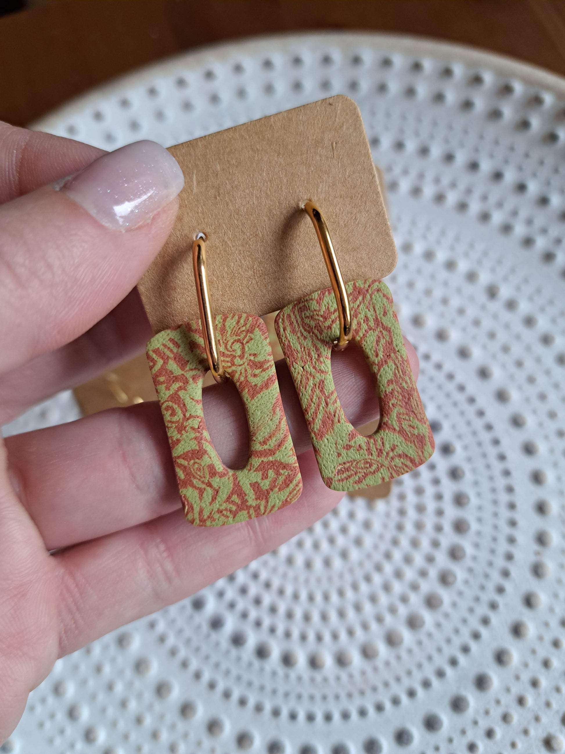 Polymerton ist eine ofenhärtende Modelliermasse die sich vor allem durch ihr leichtes Gewicht auszeichnet. Daher sind die Ohrringe sehr angenehm zu tragen und beschweren deine Ohren nicht. Nach dem Ausrollen und in Form bringen werden die Ohrringe gebacken und durchlaufen danach viele verschieden Arbeitsschritte. Einige Arbeitsschritte kannst du dir auch Hier ansehen. Manche Modelle werden nach dem Backen mit UV Harz versiegelt. Die Rückseiten der Ohrringe sind in der Regel nicht bearbeitet.