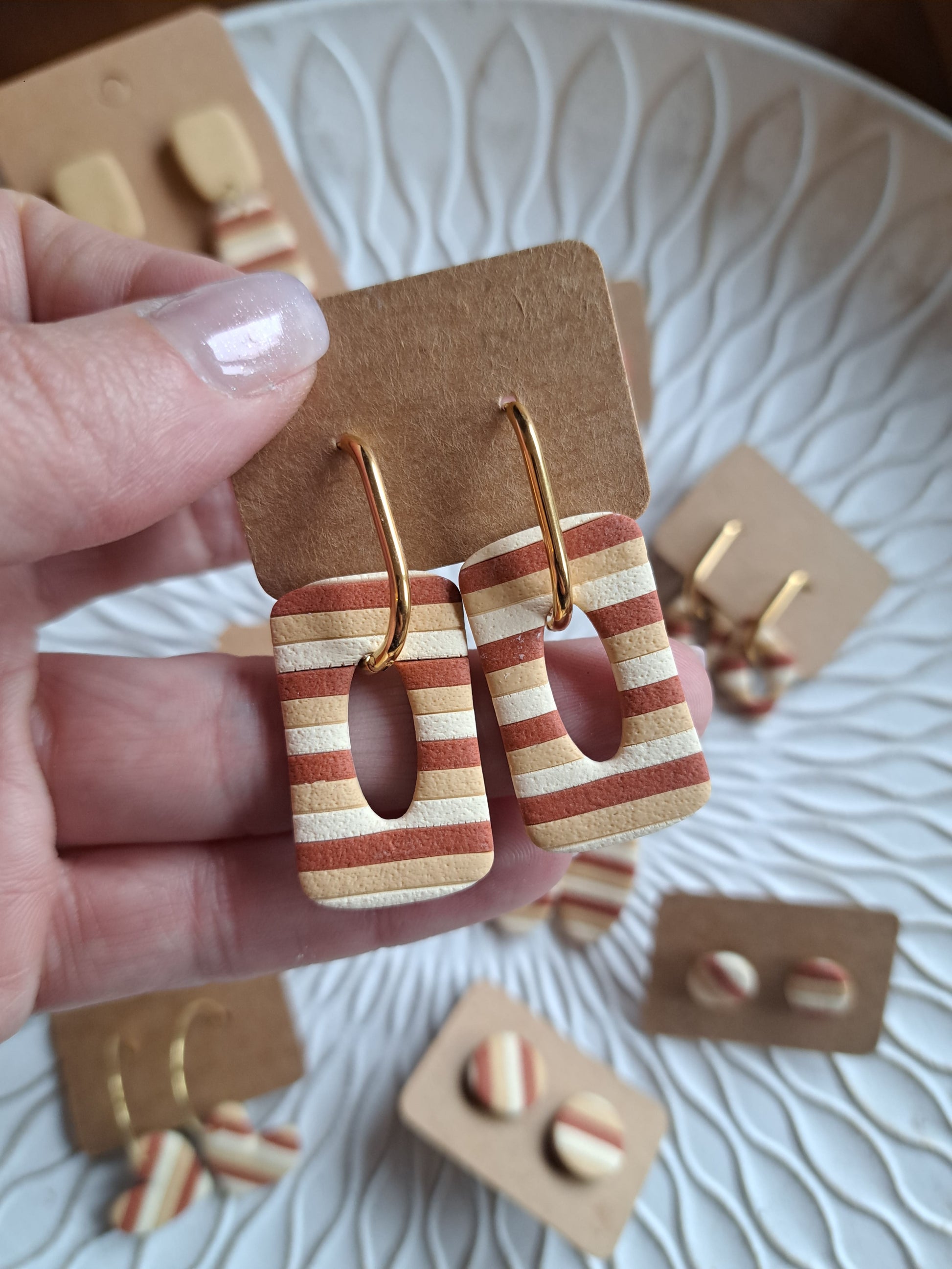 Polymerton ist eine ofenhärtende Modelliermasse die sich vor allem durch ihr leichtes Gewicht auszeichnet. Daher sind die Ohrringe sehr angenehm zu tragen und beschweren deine Ohren nicht. Nach dem Ausrollen und in Form bringen werden die Ohrringe gebacken und durchlaufen danach viele verschieden Arbeitsschritte. Einige Arbeitsschritte kannst du dir auch Hier ansehen. Manche Modelle werden nach dem Backen mit UV Harz versiegelt. Die Rückseiten der Ohrringe sind in der Regel nicht bearbeitet.
