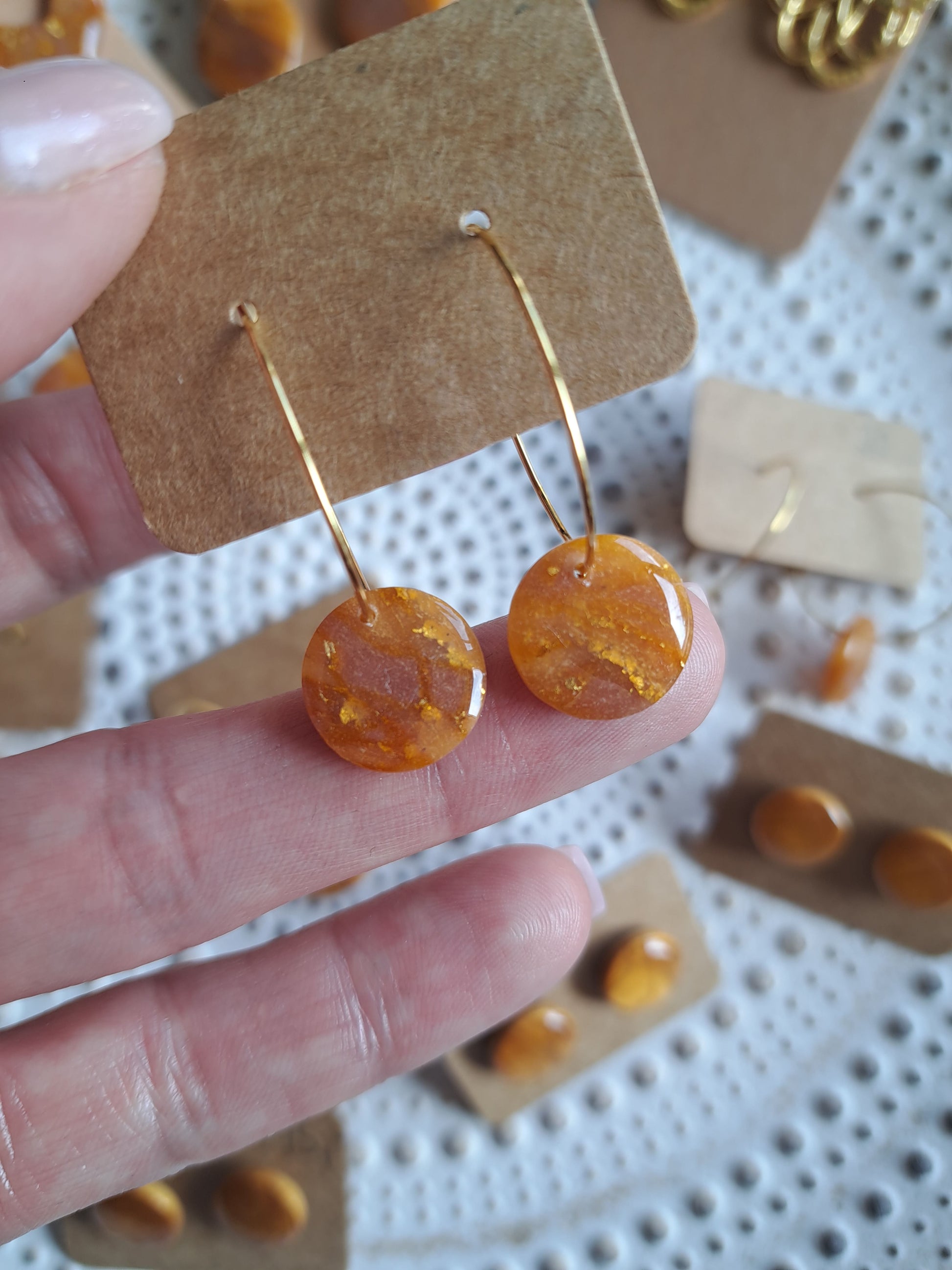 Polymerton ist eine ofenhärtende Modelliermasse die sich vor allem durch ihr leichtes Gewicht auszeichnet. Daher sind die Ohrringe sehr angenehm zu tragen und beschweren deine Ohren nicht. Nach dem Ausrollen und in Form bringen werden die Ohrringe gebacken und durchlaufen danach viele verschieden Arbeitsschritte. Einige Arbeitsschritte kannst du dir auch Hier ansehen. Manche Modelle werden nach dem Backen mit UV Harz versiegelt. Die Rückseiten der Ohrringe sind in der Regel nicht bearbeitet.