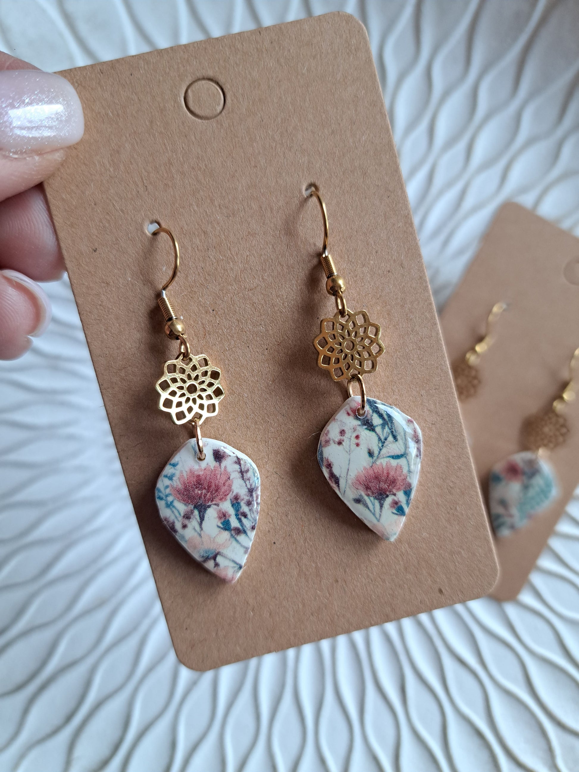 Polymerton ist eine ofenhärtende Modelliermasse die sich vor allem durch ihr leichtes Gewicht auszeichnet. Daher sind die Ohrringe sehr angenehm zu tragen und beschweren deine Ohren nicht. Nach dem Ausrollen und in Form bringen werden die Ohrringe gebacken und durchlaufen danach viele verschieden Arbeitsschritte. Einige Arbeitsschritte kannst du dir auch Hier ansehen. Manche Modelle werden nach dem Backen mit UV Harz versiegelt. Die Rückseiten der Ohrringe sind in der Regel nicht bearbeitet.