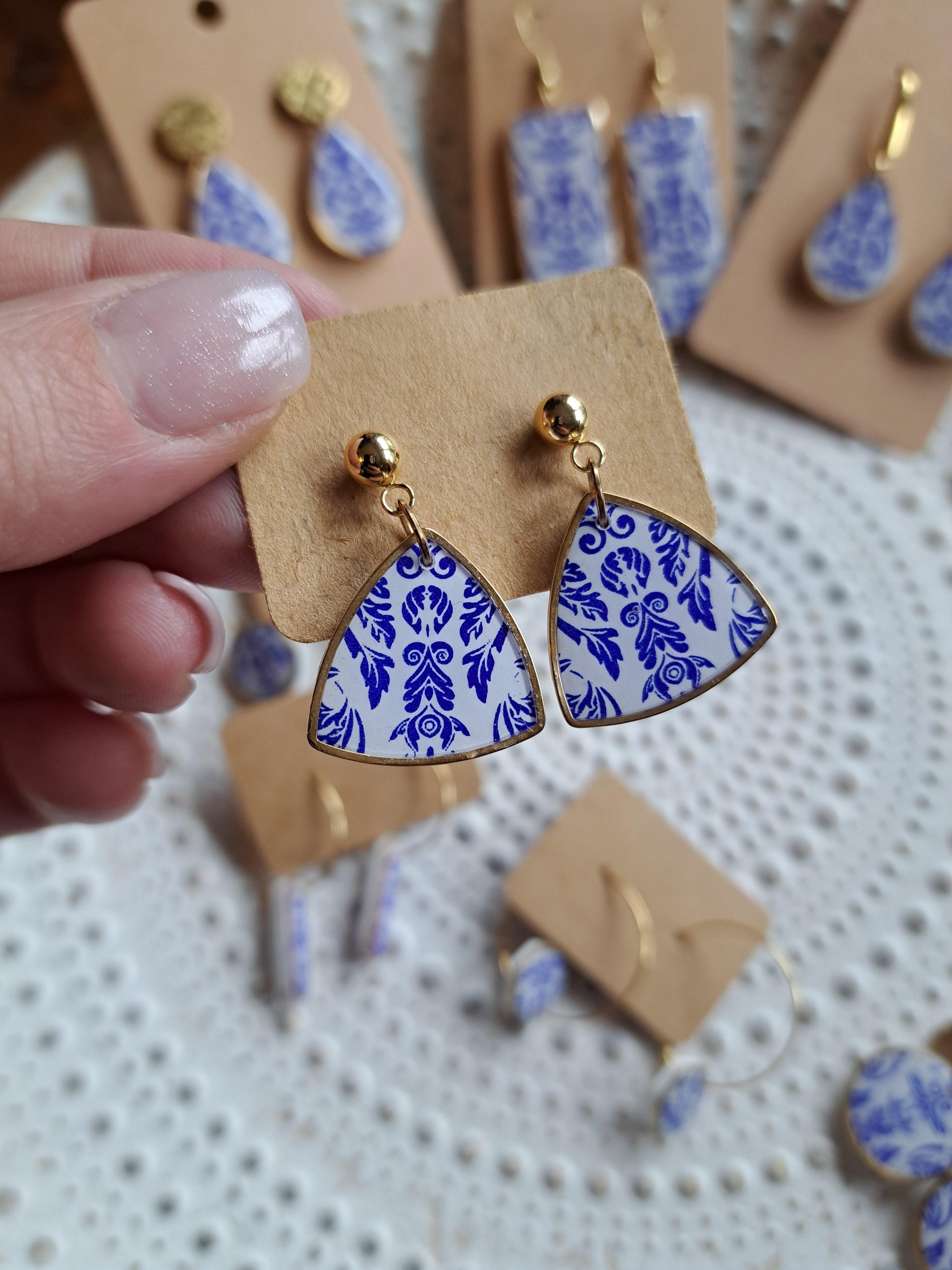 Polymerton ist eine ofenhärtende Modelliermasse die sich vor allem durch ihr leichtes Gewicht auszeichnet. Daher sind die Ohrringe sehr angenehm zu tragen und beschweren deine Ohren nicht. Nach dem Ausrollen und in Form bringen werden die Ohrringe gebacken und durchlaufen danach viele verschieden Arbeitsschritte. Einige Arbeitsschritte kannst du dir auch Hier ansehen. Manche Modelle werden nach dem Backen mit UV Harz versiegelt. Die Rückseiten der Ohrringe sind in der Regel nicht bearbeitet.