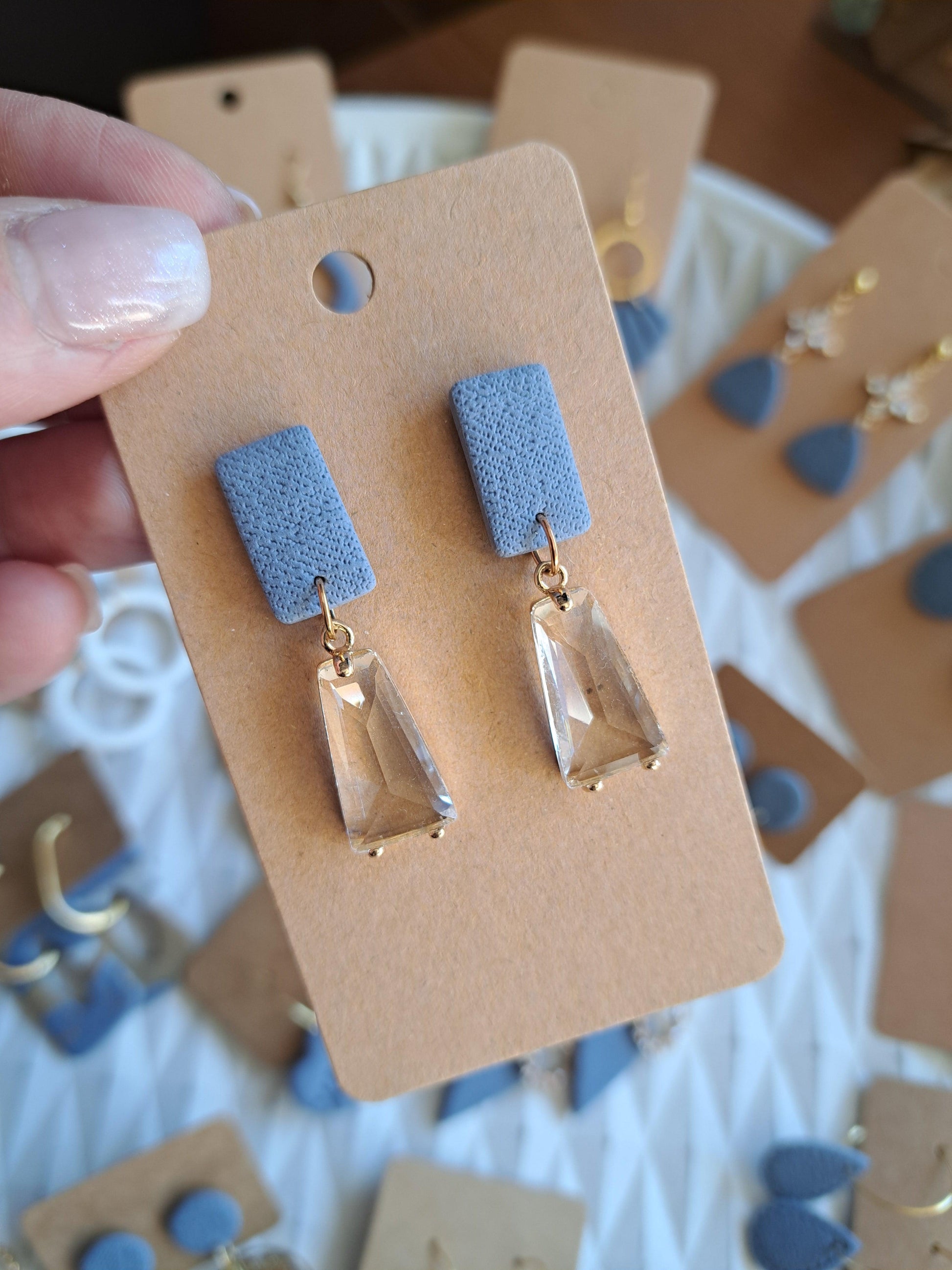 Polymerton ist eine ofenhärtende Modelliermasse die sich vor allem durch ihr leichtes Gewicht auszeichnet. Daher sind die Ohrringe sehr angenehm zu tragen und beschweren deine Ohren nicht. Nach dem Ausrollen und in Form bringen werden die Ohrringe gebacken und durchlaufen danach viele verschieden Arbeitsschritte. Einige Arbeitsschritte kannst du dir auch Hier ansehen. Manche Modelle werden nach dem Backen mit UV Harz versiegelt. Die Rückseiten der Ohrringe sind in der Regel nicht bearbeitet.