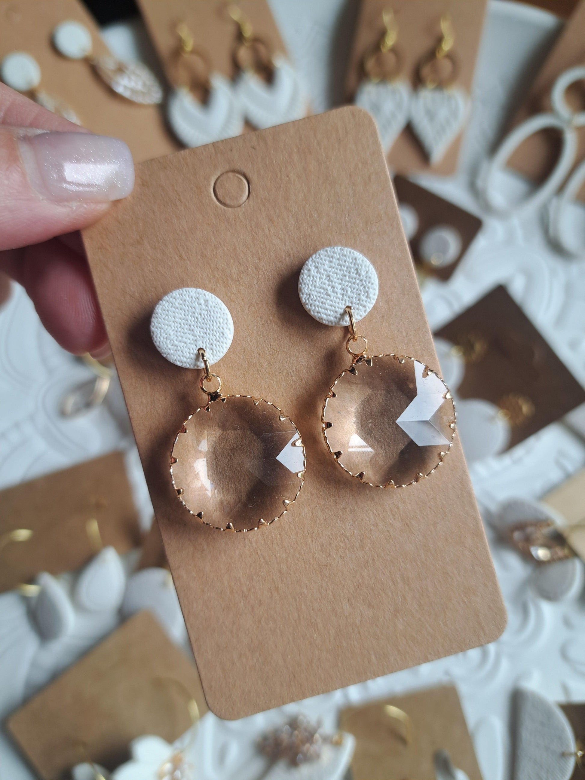 Polymerton ist eine ofenhärtende Modelliermasse die sich vor allem durch ihr leichtes Gewicht auszeichnet. Daher sind die Ohrringe sehr angenehm zu tragen und beschweren deine Ohren nicht. Nach dem Ausrollen und in Form bringen werden die Ohrringe gebacken und durchlaufen danach viele verschieden Arbeitsschritte. Einige Arbeitsschritte kannst du dir auch Hier ansehen. Manche Modelle werden nach dem Backen mit UV Harz versiegelt. Die Rückseiten der Ohrringe sind in der Regel nicht bearbeitet.