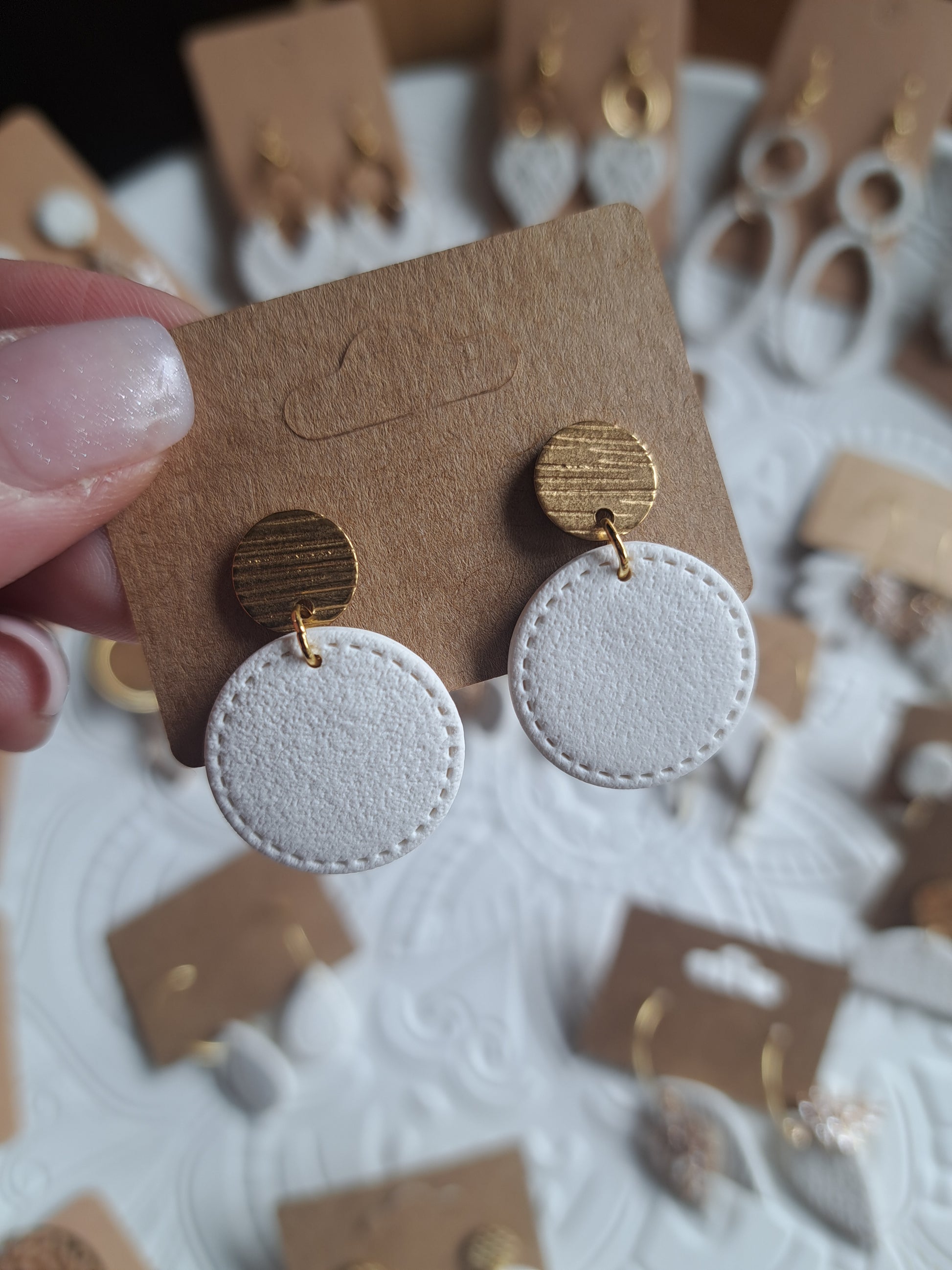 Polymerton ist eine ofenhärtende Modelliermasse die sich vor allem durch ihr leichtes Gewicht auszeichnet. Daher sind die Ohrringe sehr angenehm zu tragen und beschweren deine Ohren nicht. Nach dem Ausrollen und in Form bringen werden die Ohrringe gebacken und durchlaufen danach viele verschieden Arbeitsschritte. Einige Arbeitsschritte kannst du dir auch Hier ansehen. Manche Modelle werden nach dem Backen mit UV Harz versiegelt. Die Rückseiten der Ohrringe sind in der Regel nicht bearbeitet.