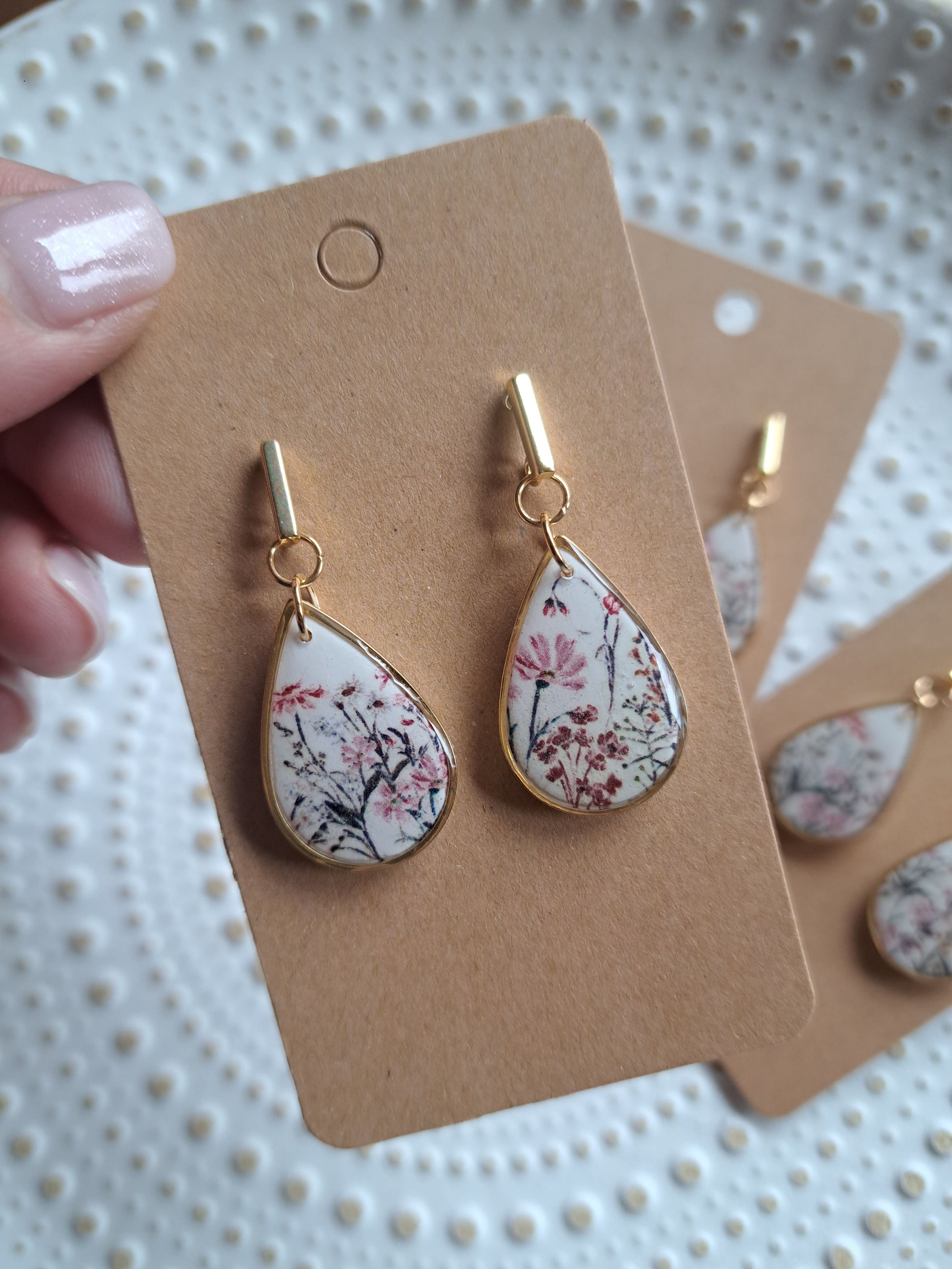 Polymerton ist eine ofenhärtende Modelliermasse die sich vor allem durch ihr leichtes Gewicht auszeichnet. Daher sind die Ohrringe sehr angenehm zu tragen und beschweren deine Ohren nicht. Nach dem Ausrollen und in Form bringen werden die Ohrringe gebacken und durchlaufen danach viele verschieden Arbeitsschritte. Einige Arbeitsschritte kannst du dir auch Hier ansehen. Manche Modelle werden nach dem Backen mit UV Harz versiegelt. Die Rückseiten der Ohrringe sind in der Regel nicht bearbeitet.