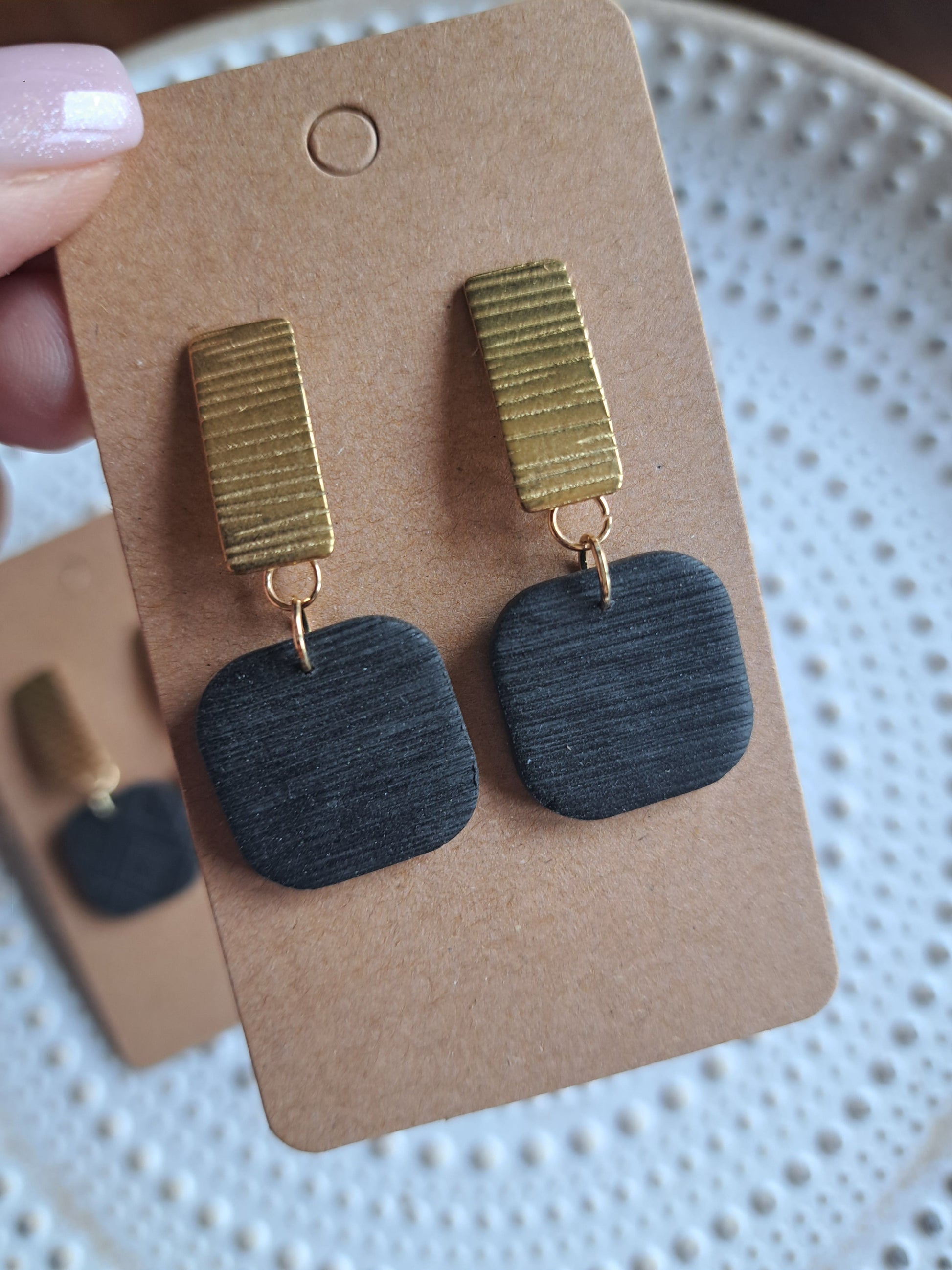 Polymerton ist eine ofenhärtende Modelliermasse die sich vor allem durch ihr leichtes Gewicht auszeichnet. Daher sind die Ohrringe sehr angenehm zu tragen und beschweren deine Ohren nicht. Nach dem Ausrollen und in Form bringen werden die Ohrringe gebacken und durchlaufen danach viele verschieden Arbeitsschritte. Einige Arbeitsschritte kannst du dir auch Hier ansehen. Manche Modelle werden nach dem Backen mit UV Harz versiegelt. Die Rückseiten der Ohrringe sind in der Regel nicht bearbeitet.