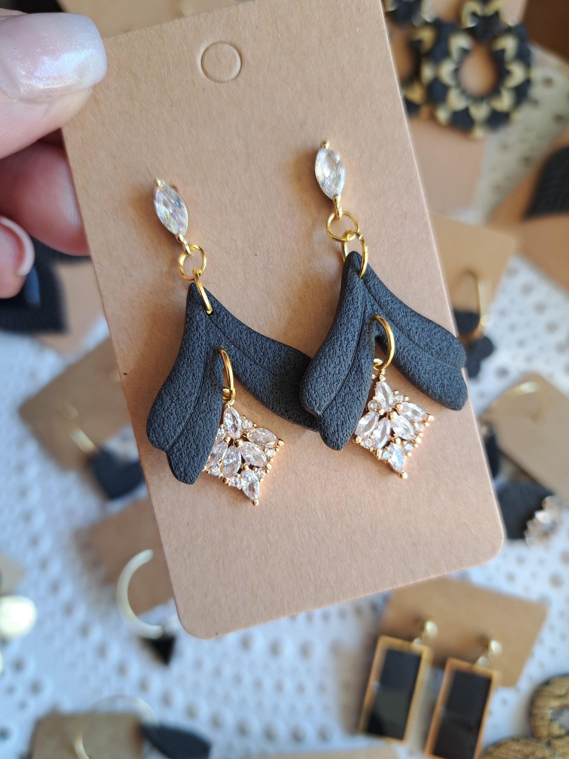 Polymerton ist eine ofenhärtende Modelliermasse die sich vor allem durch ihr leichtes Gewicht auszeichnet. Daher sind die Ohrringe sehr angenehm zu tragen und beschweren deine Ohren nicht. Nach dem Ausrollen und in Form bringen werden die Ohrringe gebacken und durchlaufen danach viele verschieden Arbeitsschritte. Einige Arbeitsschritte kannst du dir auch Hier ansehen. Manche Modelle werden nach dem Backen mit UV Harz versiegelt. Die Rückseiten der Ohrringe sind in der Regel nicht bearbeitet.