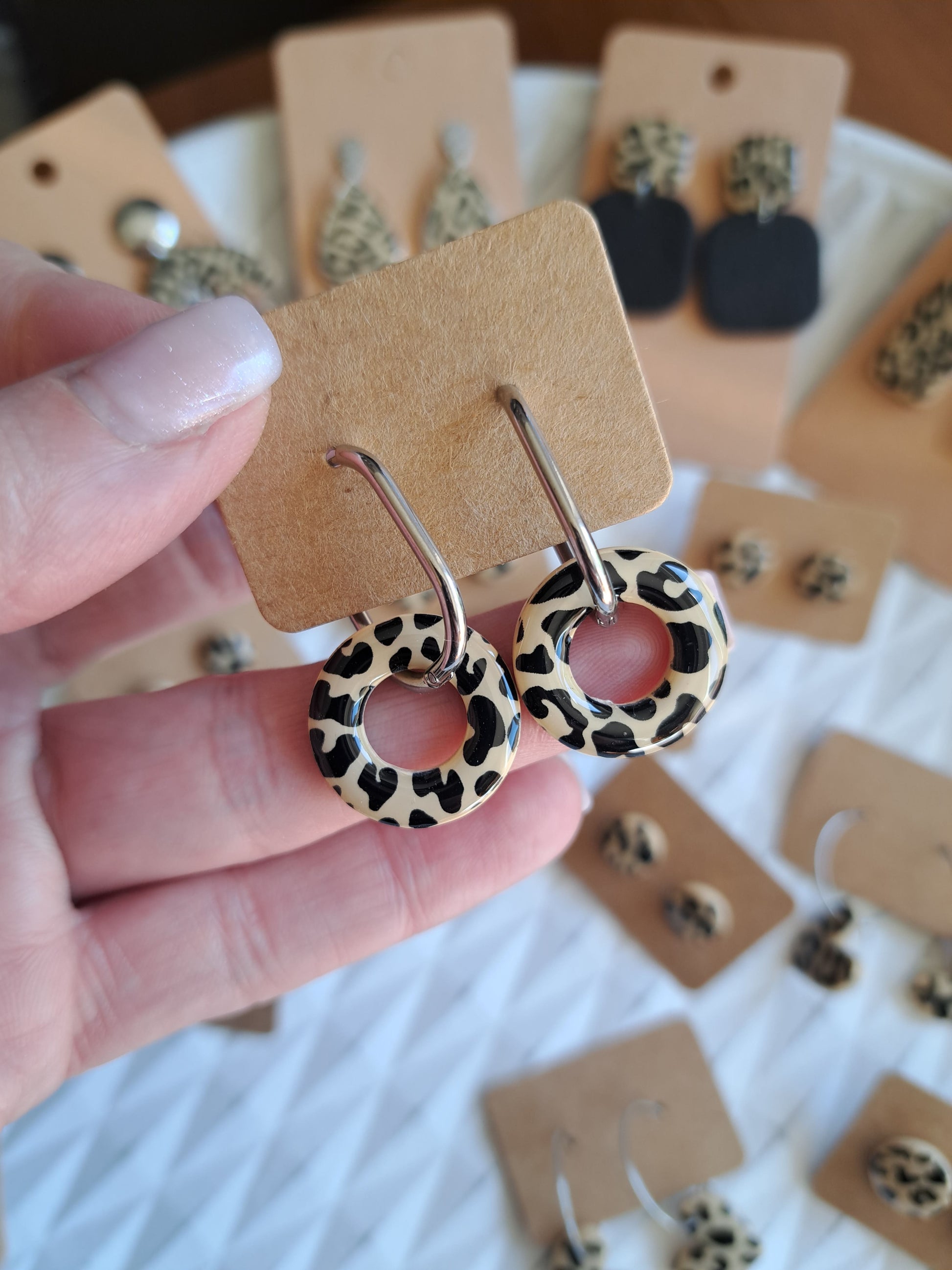 Polymerton ist eine ofenhärtende Modelliermasse die sich vor allem durch ihr leichtes Gewicht auszeichnet. Daher sind die Ohrringe sehr angenehm zu tragen und beschweren deine Ohren nicht. Nach dem Ausrollen und in Form bringen werden die Ohrringe gebacken und durchlaufen danach viele verschieden Arbeitsschritte. Einige Arbeitsschritte kannst du dir auch Hier ansehen. Manche Modelle werden nach dem Backen mit UV Harz versiegelt. Die Rückseiten der Ohrringe sind in der Regel nicht bearbeitet.