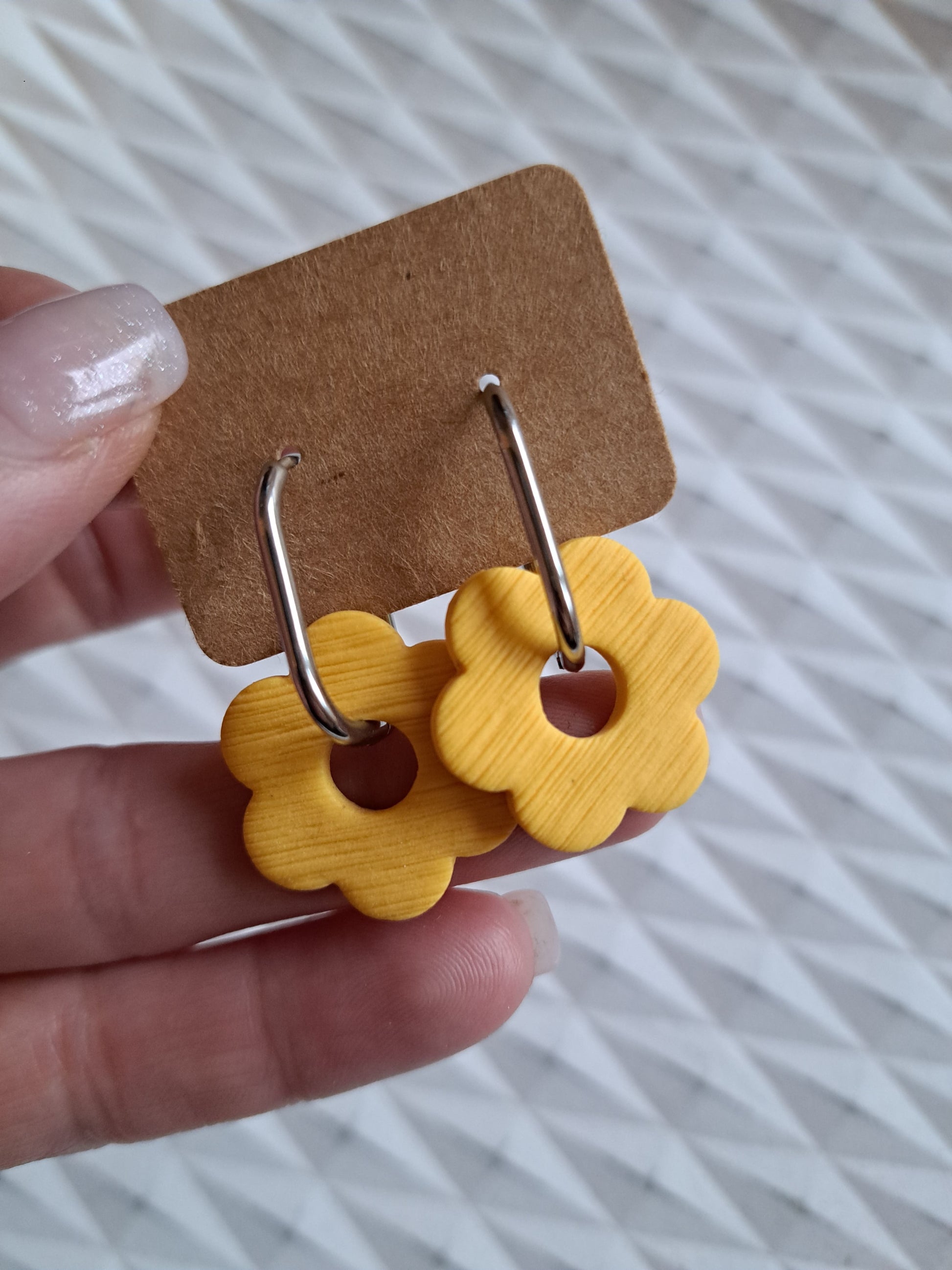 Polymerton ist eine ofenhärtende Modelliermasse die sich vor allem durch ihr leichtes Gewicht auszeichnet. Daher sind die Ohrringe sehr angenehm zu tragen und beschweren deine Ohren nicht. Nach dem Ausrollen und in Form bringen werden die Ohrringe gebacken und durchlaufen danach viele verschieden Arbeitsschritte. Einige Arbeitsschritte kannst du dir auch Hier ansehen. Manche Modelle werden nach dem Backen mit UV Harz versiegelt. Die Rückseiten der Ohrringe sind in der Regel nicht bearbeitet.