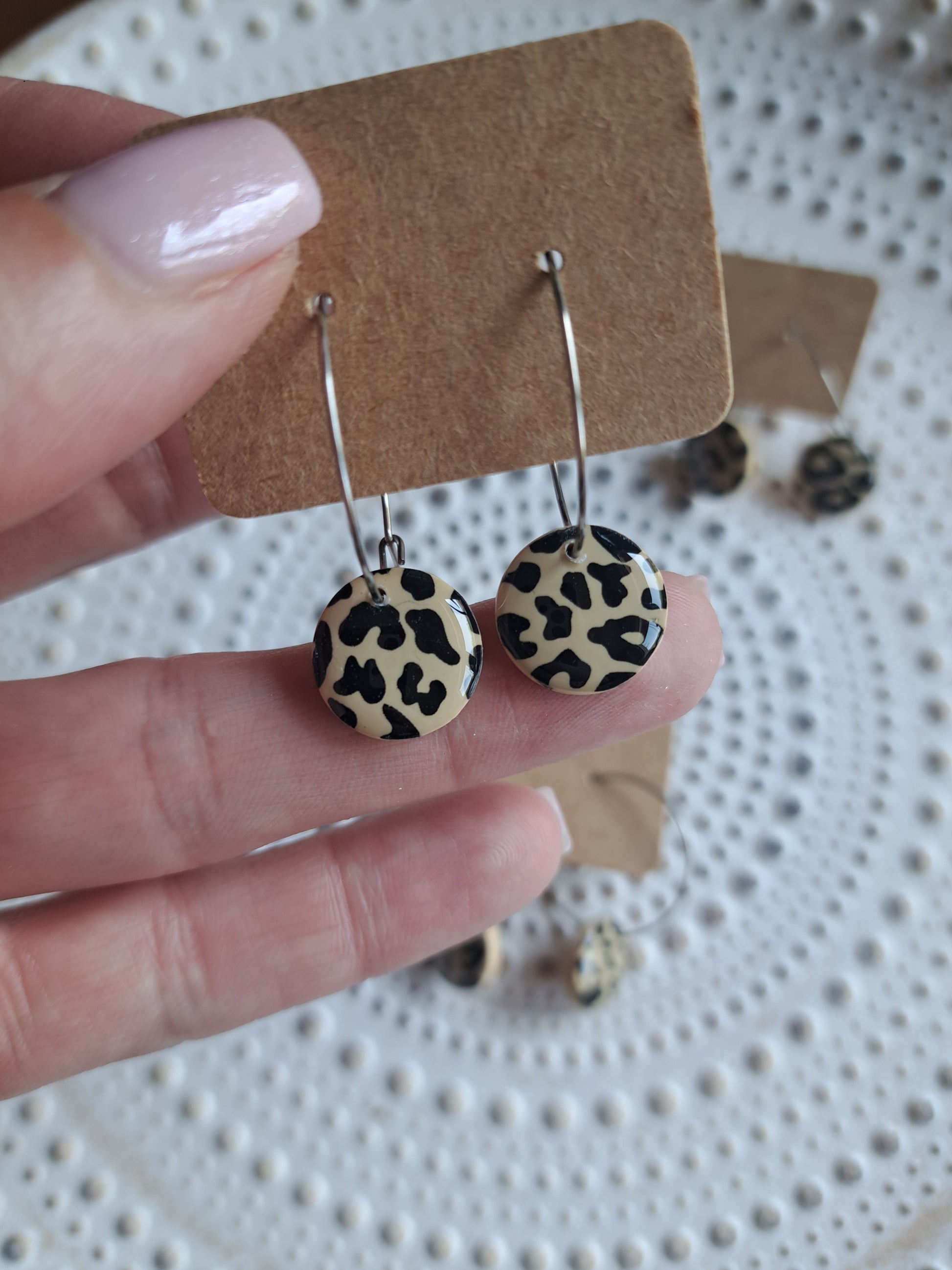 Polymerton ist eine ofenhärtende Modelliermasse die sich vor allem durch ihr leichtes Gewicht auszeichnet. Daher sind die Ohrringe sehr angenehm zu tragen und beschweren deine Ohren nicht. Nach dem Ausrollen und in Form bringen werden die Ohrringe gebacken und durchlaufen danach viele verschieden Arbeitsschritte. Einige Arbeitsschritte kannst du dir auch Hier ansehen. Manche Modelle werden nach dem Backen mit UV Harz versiegelt. Die Rückseiten der Ohrringe sind in der Regel nicht bearbeitet.