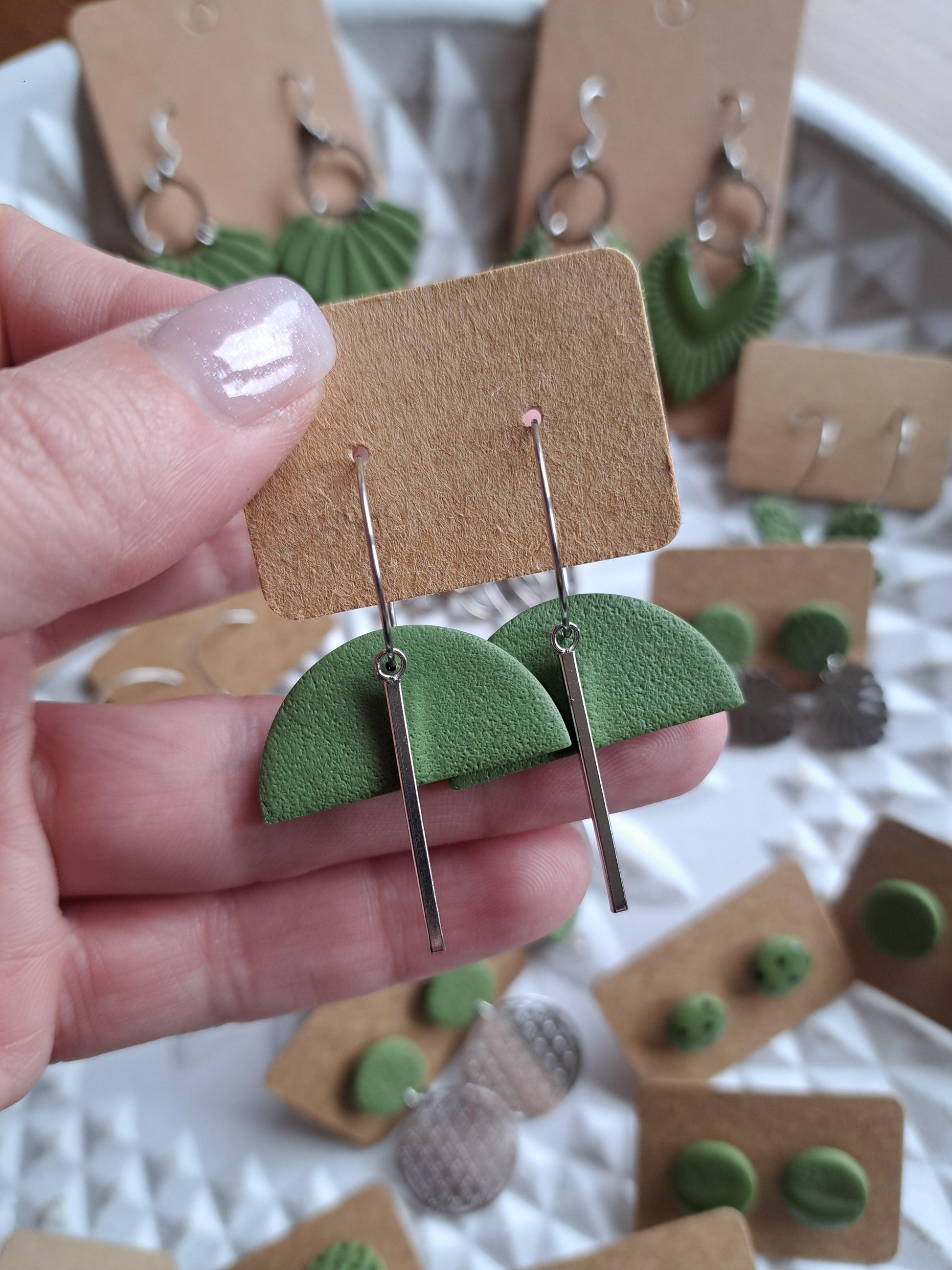 Polymerton ist eine ofenhärtende Modelliermasse die sich vor allem durch ihr leichtes Gewicht auszeichnet. Daher sind die Ohrringe sehr angenehm zu tragen und beschweren deine Ohren nicht. Nach dem Ausrollen und in Form bringen werden die Ohrringe gebacken und durchlaufen danach viele verschieden Arbeitsschritte. Einige Arbeitsschritte kannst du dir auch Hier ansehen. Manche Modelle werden nach dem Backen mit UV Harz versiegelt. Die Rückseiten der Ohrringe sind in der Regel nicht bearbeitet.