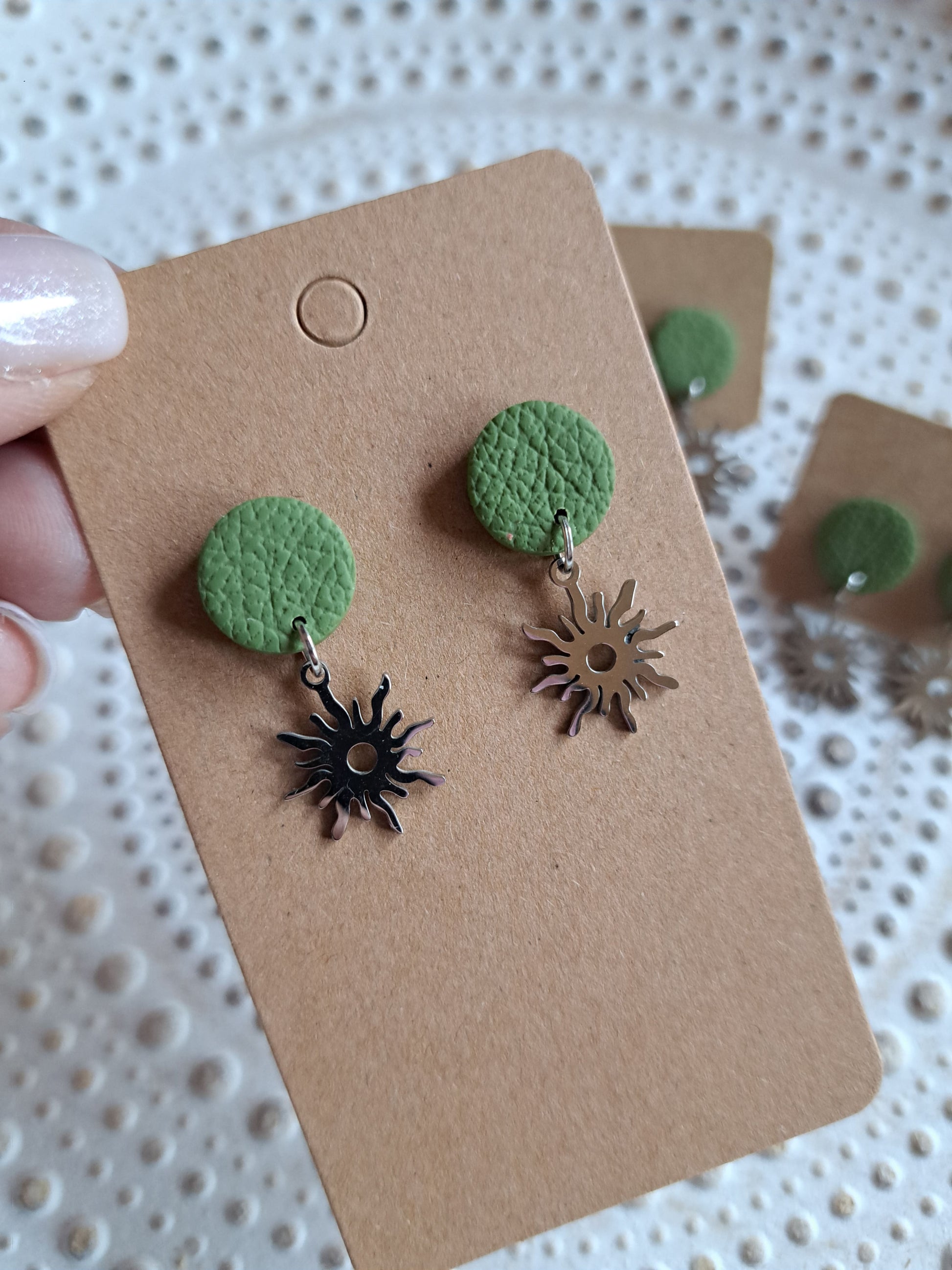 Polymerton ist eine ofenhärtende Modelliermasse die sich vor allem durch ihr leichtes Gewicht auszeichnet. Daher sind die Ohrringe sehr angenehm zu tragen und beschweren deine Ohren nicht. Nach dem Ausrollen und in Form bringen werden die Ohrringe gebacken und durchlaufen danach viele verschieden Arbeitsschritte. Einige Arbeitsschritte kannst du dir auch Hier ansehen. Manche Modelle werden nach dem Backen mit UV Harz versiegelt. Die Rückseiten der Ohrringe sind in der Regel nicht bearbeitet.