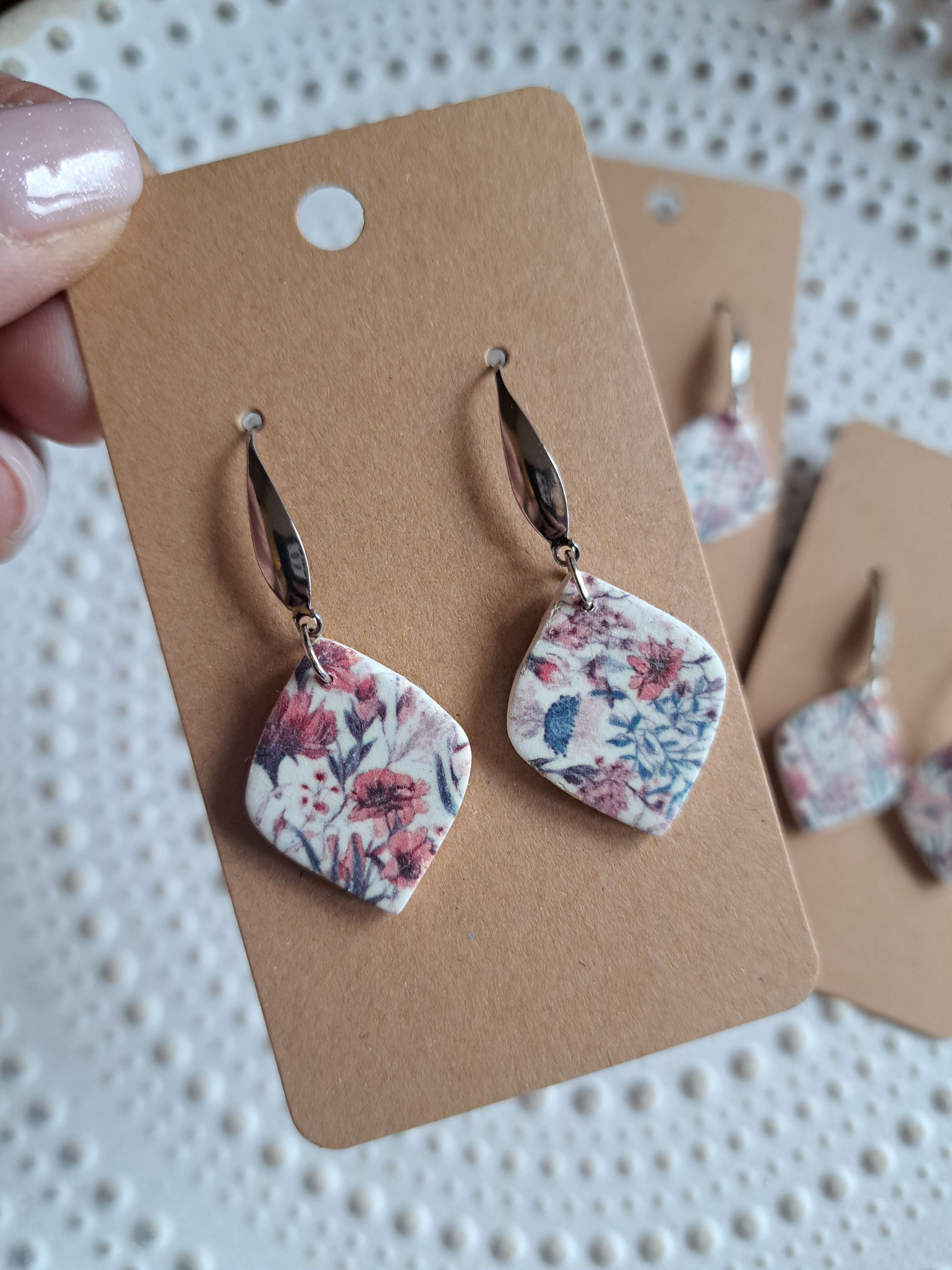 Polymerton ist eine ofenhärtende Modelliermasse die sich vor allem durch ihr leichtes Gewicht auszeichnet. Daher sind die Ohrringe sehr angenehm zu tragen und beschweren deine Ohren nicht. Nach dem Ausrollen und in Form bringen werden die Ohrringe gebacken und durchlaufen danach viele verschieden Arbeitsschritte. Einige Arbeitsschritte kannst du dir auch Hier ansehen. Manche Modelle werden nach dem Backen mit UV Harz versiegelt. Die Rückseiten der Ohrringe sind in der Regel nicht bearbeitet.