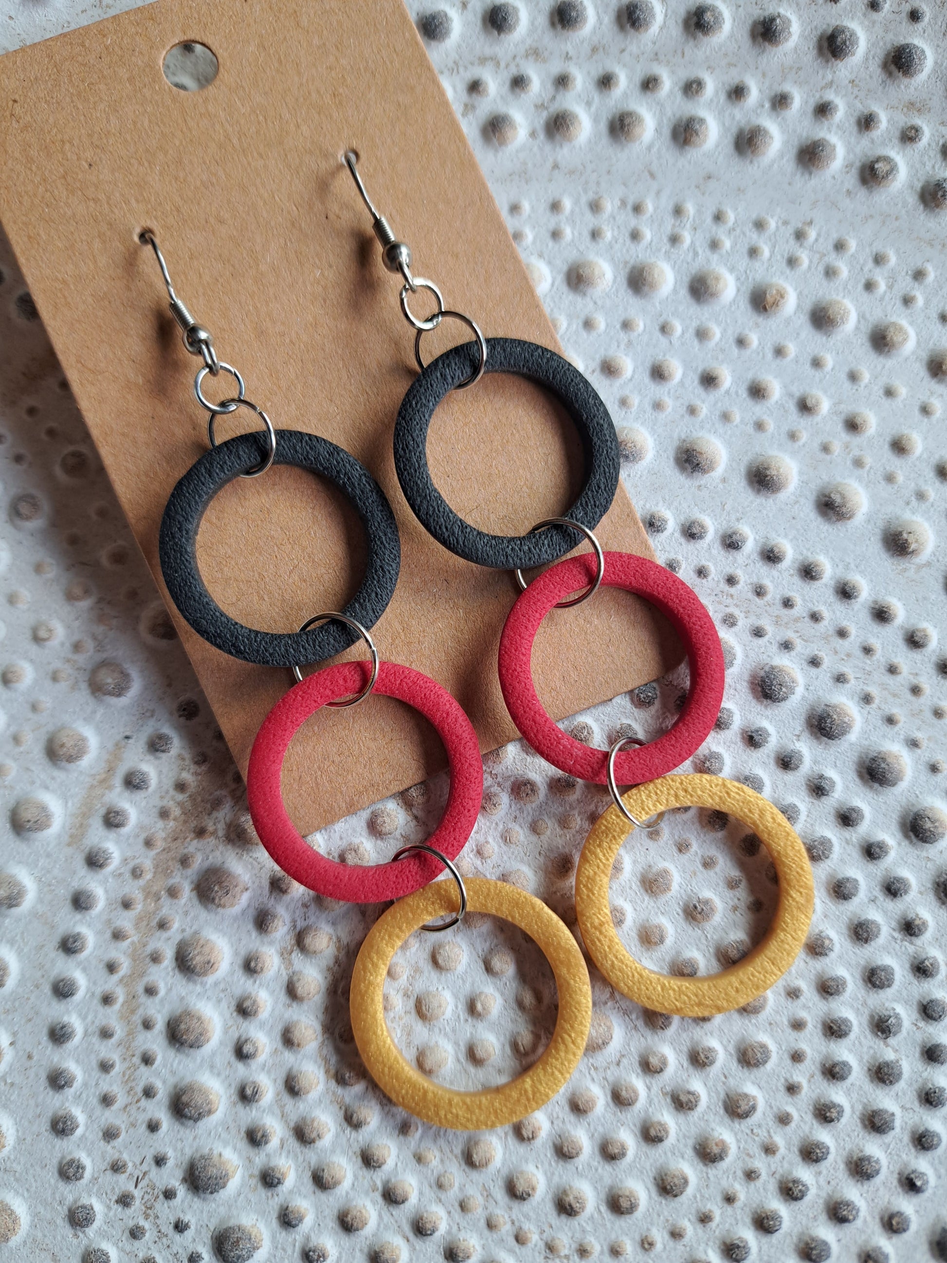 Polymerton ist eine ofenhärtende Modelliermasse die sich vor allem durch ihr leichtes Gewicht auszeichnet. Daher sind die Ohrringe sehr angenehm zu tragen und beschweren deine Ohren nicht. Nach dem Ausrollen und in Form bringen werden die Ohrringe gebacken und durchlaufen danach viele verschieden Arbeitsschritte. Einige Arbeitsschritte kannst du dir auch Hier ansehen. Manche Modelle werden nach dem Backen mit UV Harz versiegelt. Die Rückseiten der Ohrringe sind in der Regel nicht bearbeitet.