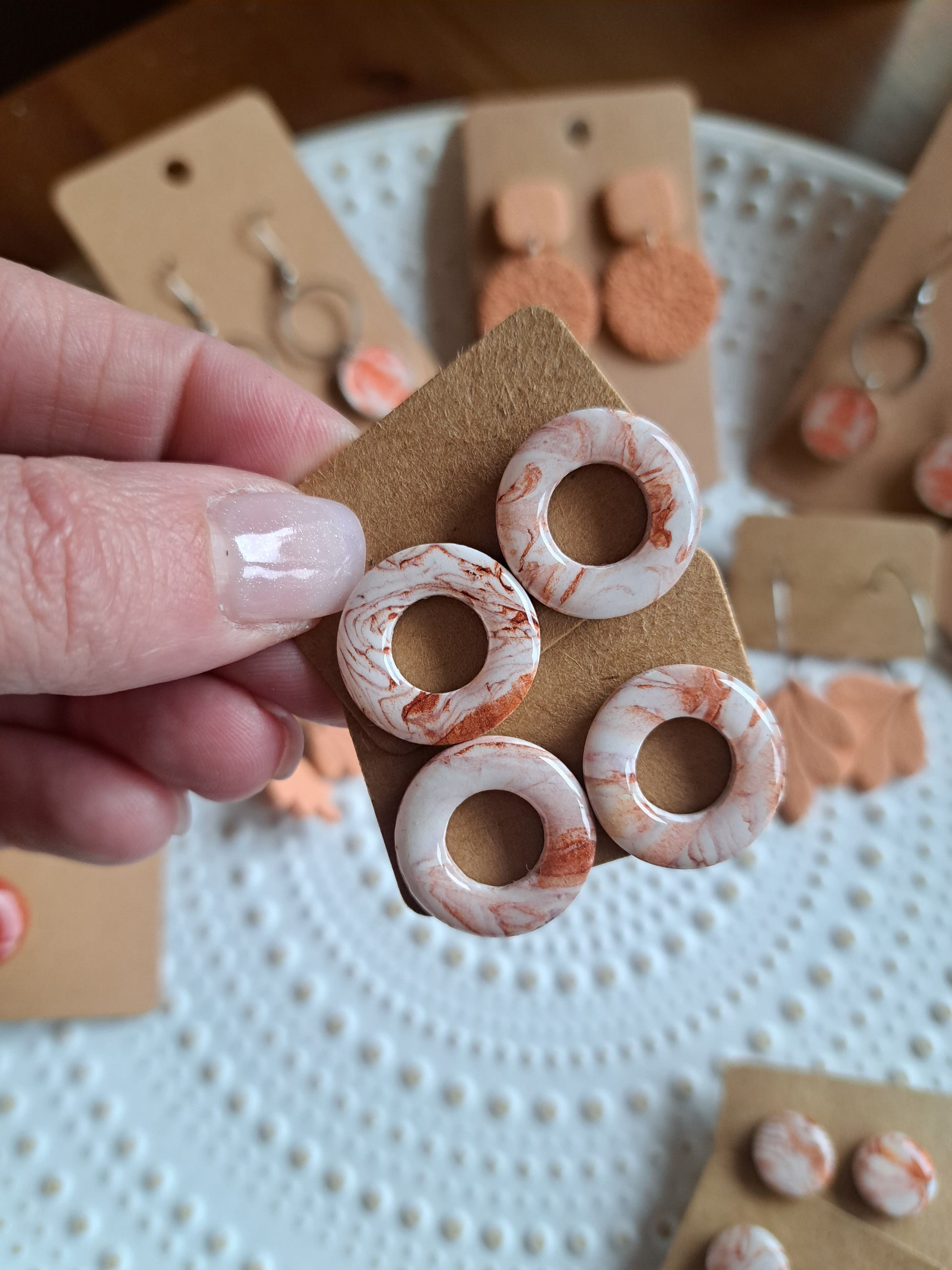Polymerton ist eine ofenhärtende Modelliermasse die sich vor allem durch ihr leichtes Gewicht auszeichnet. Daher sind die Ohrringe sehr angenehm zu tragen und beschweren deine Ohren nicht. Nach dem Ausrollen und in Form bringen werden die Ohrringe gebacken und durchlaufen danach viele verschieden Arbeitsschritte. Einige Arbeitsschritte kannst du dir auch Hier ansehen. Manche Modelle werden nach dem Backen mit UV Harz versiegelt. Die Rückseiten der Ohrringe sind in der Regel nicht bearbeitet.