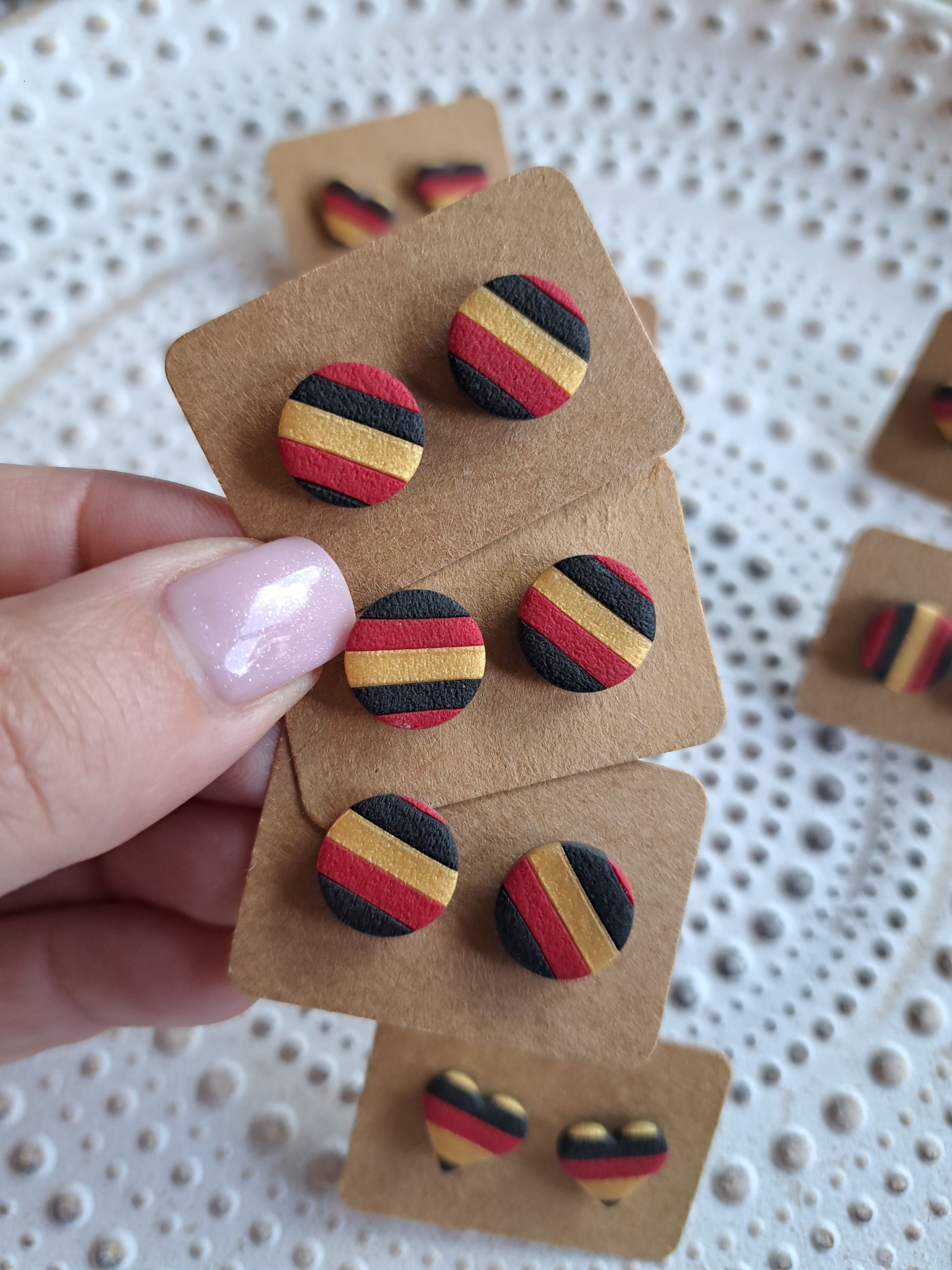 Polymerton ist eine ofenhärtende Modelliermasse die sich vor allem durch ihr leichtes Gewicht auszeichnet. Daher sind die Ohrringe sehr angenehm zu tragen und beschweren deine Ohren nicht. Nach dem Ausrollen und in Form bringen werden die Ohrringe gebacken und durchlaufen danach viele verschieden Arbeitsschritte. Einige Arbeitsschritte kannst du dir auch Hier ansehen. Manche Modelle werden nach dem Backen mit UV Harz versiegelt. Die Rückseiten der Ohrringe sind in der Regel nicht bearbeitet.