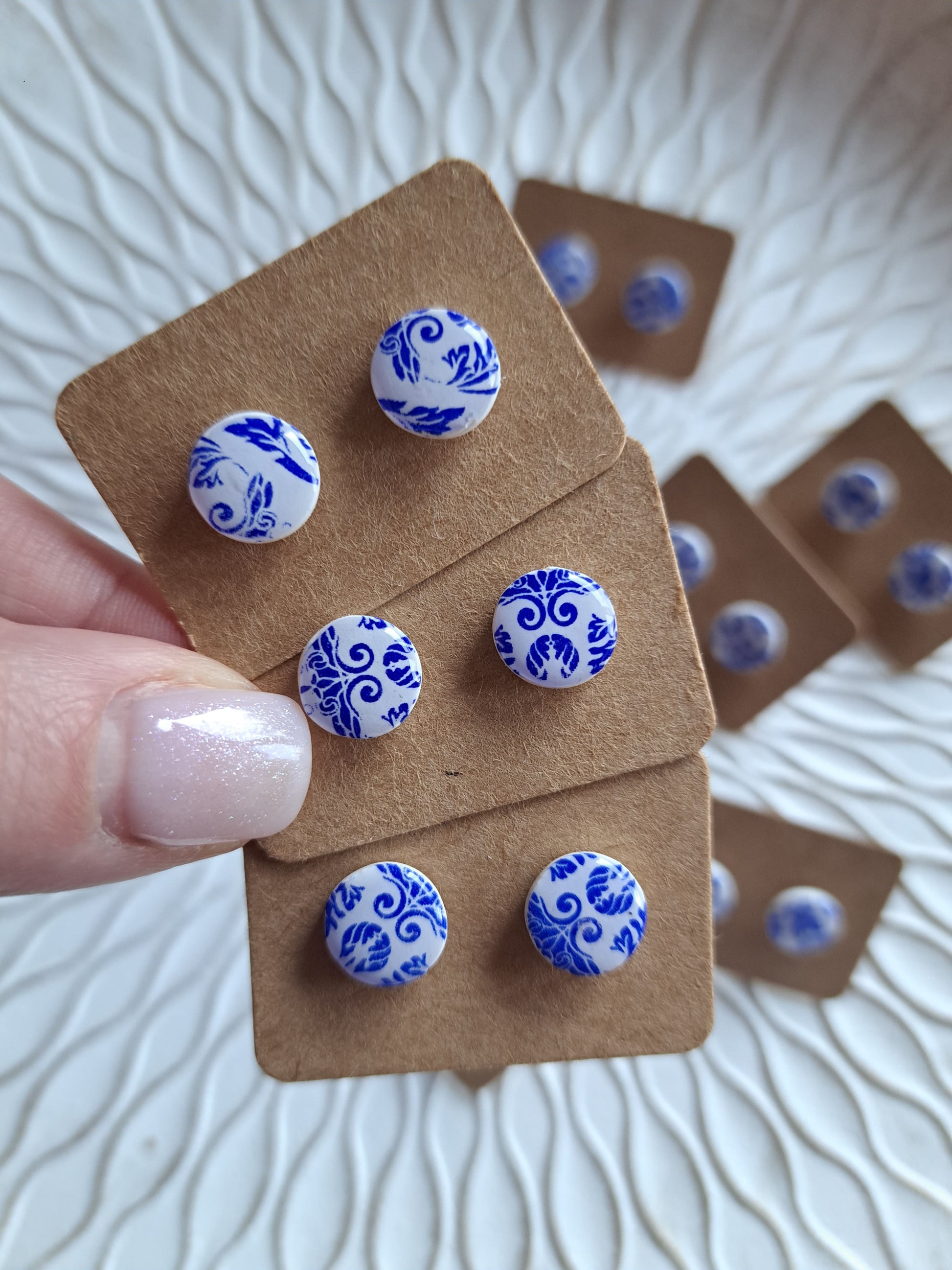 Polymerton ist eine ofenhärtende Modelliermasse die sich vor allem durch ihr leichtes Gewicht auszeichnet. Daher sind die Ohrringe sehr angenehm zu tragen und beschweren deine Ohren nicht. Nach dem Ausrollen und in Form bringen werden die Ohrringe gebacken und durchlaufen danach viele verschieden Arbeitsschritte. Einige Arbeitsschritte kannst du dir auch Hier ansehen. Manche Modelle werden nach dem Backen mit UV Harz versiegelt. Die Rückseiten der Ohrringe sind in der Regel nicht bearbeitet.